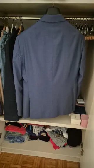 Vendo completo vintage anni '70 Rodrigo, blu rigato tono su tono, taglia 54 (100% lana). Giacca: con spacchi sul retro. Misure: 50cm spalla-spalla, 62cm ascella-ascella, 75cm spalla-bordo inferiore, 51cm ascella-bordo inferiore, 65cm manica spalla-polso. Pantalone: Misure: 49cm vita, 106cm vita-bordo inferiore, 81cm cavallo-bordo inferiore, 24cm larghezza caviglia, 8cm margine interno per nuovo orlo. Colore brillante, tenuto benissimo (visibile in foto). Possibilità di consegna a mano in diverse zone di Milano, previo accordo.
