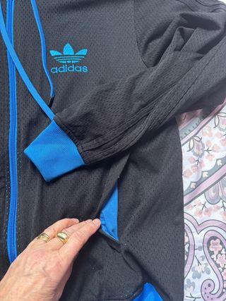 Giacca sportiva con cappuccio. - Zip frontale. - Logo Adidas sul petto. - Polsini e fondo a contrasto.