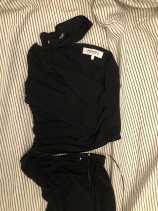 Vestito midi nero con dettagli cut out. - Design asimmetrico con cut out sulla vita. - Tessuto morbido ed elasticizzato.