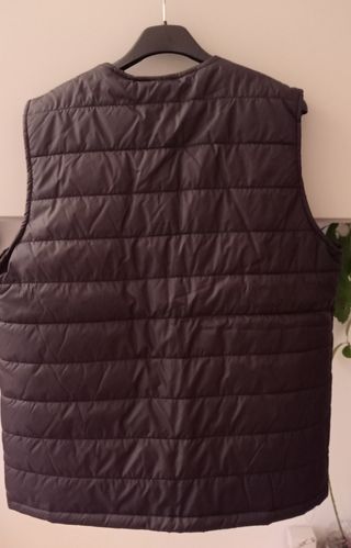 Gilet termico ricaricabile,colore nero,molto leggero. Due tasche sul davanti,una contiene la presa USB per la ricarica. Tessuto trapuntato con chiusura zip frontale. Taglia 2xl. Lunghezza spalle cm 40, circonferenza torace cm 110,lunghezza cm 64. Nuovo,in confezione originale. Power bank non incluso.