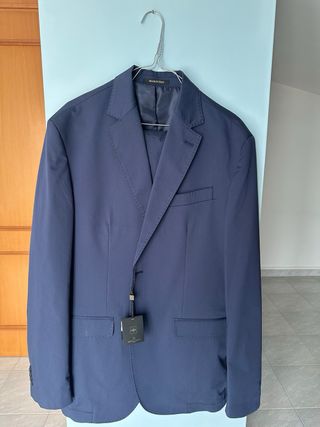 Elegante completo da uomo. - Giacca con chiusura a due bottoni. - Tasche frontali applicate. - Polsini con bottoni. - Pantaloni coordinati. - Taglia 42