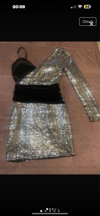 Abito monospalla paillettes nero/argento