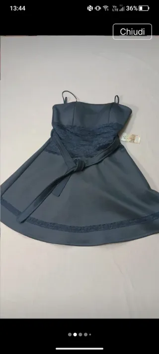 Vestito elegante blu e nero nuovo con cartellino