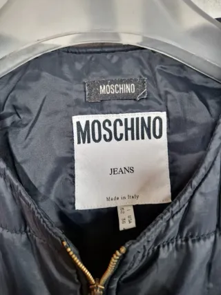 Gilet imbottito Moschino in colore nero. Presenta un graffio. - Chiusura con zip dorata. - Taschino sul petto con bottone. - Tasche laterali con zip dorata.