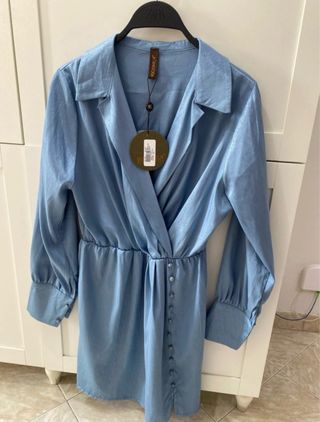 Abito pull azzurro con perline