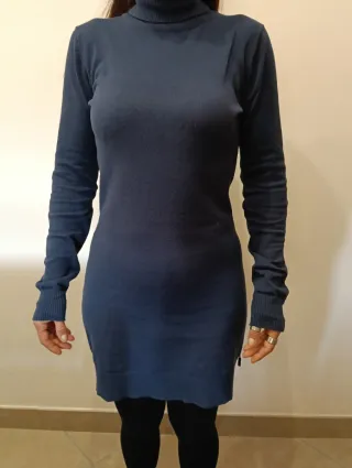 Vestitino da donna a manica lunga, collo alto. - Maniche lunghe. - Tessuto morbido e confortevole. - Lunghezza prima del ginocchio. - Colore Blu notte