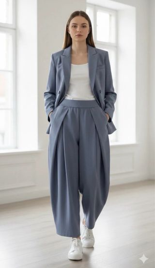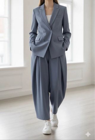 Tailleur donna blu con pantalone largo nuovo