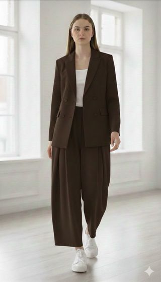 Tailleur donna marrone pantalone largo nuovo