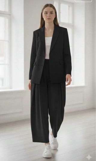 Tailleur donna nero pantalone largo nuovo