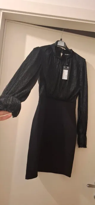 Vestito elegante con tessuto luccicante in filati metallici con maniche a sbuffo e gonna a tubino. Marca: Pittarello Condizioni: Nuovo col cartellino Taglia : S #abitoelegante #abitoelegante #tubinonero #cocktaildress #pittarello #manicheasbuffo