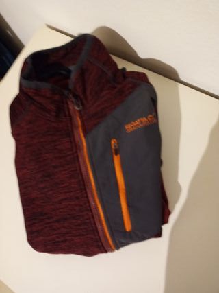 Giacca sportiva Regatta, perfetta per attività all'aperto. - Tessuto tecnico resistente. - Dettagli grigi e arancioni. - Zip frontale.