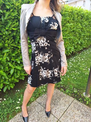 Completo elegante, giacca + canotta Canotta: lunghezza 70cm, spalle 40cm Giacca (con maniche a ¾): lunghezza (posteriore) 80cm, spalle 40m, maniche 40cm