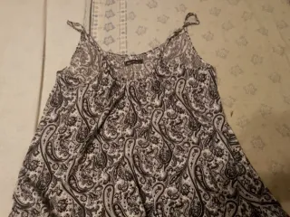 Bellissimo abito estivo a spalline, con stampa a blocchi bianchi e neri. 100% viscosa, taglia L, corpetto lavorato, gonna morbida a pieghe. In buono stato. Euro 9.99 - Perfetto per l'estate - Vestibilità comoda - In buono stato. Euro 9.99