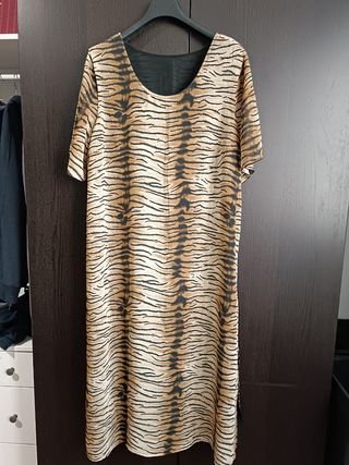 Abito lungo animalier con fodera nera, spacchi laterali da entrambi i lati, maniche ampie con dettaglio. 100%viscosa taglia XXL
