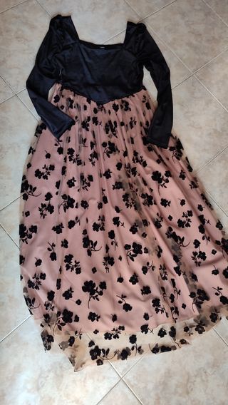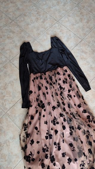 Vestito lungo rosa antico e nero floreale