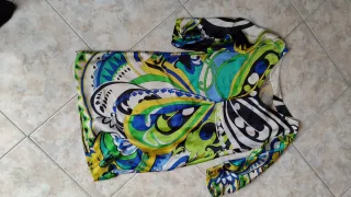 Vestito estivo multicolor in stile etnico. Punto smock elastico sul retro. Segnato come taglia unica, nella foto lo indosso io che porto una M. ➡️Misure in ultima foto ⚠️Prezzo non trattabile.