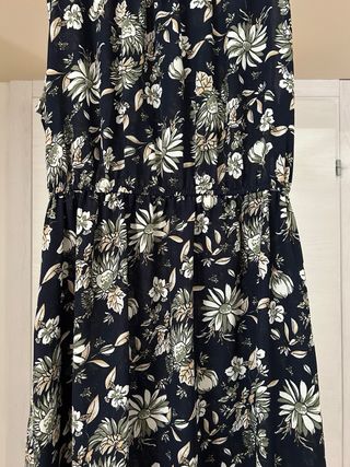 Vestito H&M 100% cotone, bianco tendente al panna con fantasia floreale, con spalline regolabili. Chiusura laterale con zip. Sotto al seno ha un elastico (non si estende molto, circa 3 o 4 cm), poi scende largo. Misure in ultima foto.
