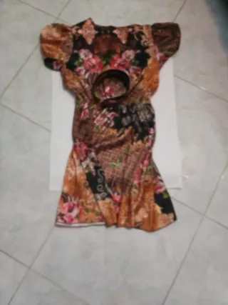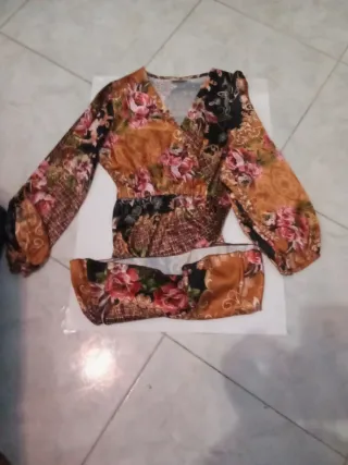 Vendo bellissimo vestito taglia L, fantasia floreale sui toni del marrone, nero e rosa. Modello con maniche lunghe e cintura in vita che valorizza la figura. Tessuto leggero e comodo, perfetto per primavera, autunno o serate speciali.