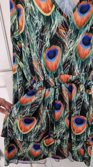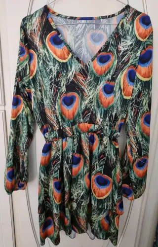 Abito corto fantasia pavone manica lunga
