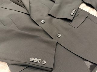 Completo elegante composto da giacca e pantaloni. - Giacca monopetto con due bottoni. - Pantaloni con pinces e tasche. - Tessuto con trama fine.