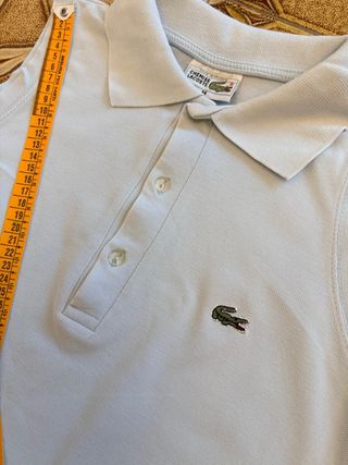 Abito senza maniche firmato Lacoste, colore beige. - Logo del coccodrillo ricamato. - Collo a polo con bottoni. - Tessuto in piqué di cotone.
