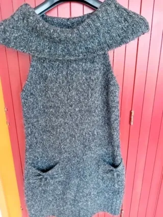Vestito invernale in maglia tg.s-m - Scollo ampio e morbido. - Due tasche applicate sul davanti.