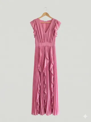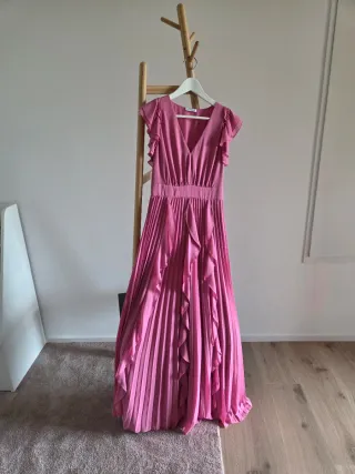Abito plissettato lungo con spacco davanti profondo. Scollatura all’americana con chiusura con laccetto Mai indossato