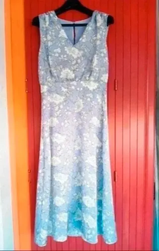 Bellissimo vestito lungo, ideale per occasioni speciali. - Presenta un design elegante e raffinato. - Il tessuto è morbido e fluido. - La linea è a trapezio, con una gonna ampia e leggera. - Perfetto per valorizzare la figura. taglia 42/44.