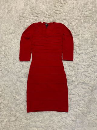 Elegante vestito corto a maniche lunghe aderente - Scollo a V. - Design a fasce. - Tessuto elasticizzato.