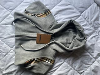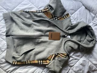 Gilet Burberry originale, mai indossato, con dettagli iconici. - Taglia S - Colore grigio con inserti a fantasia Burberry - Chiusura con zip