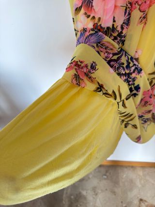 Vestito Made in Italy con una stampa floreale vivace e colorata. Perfetto per aggiungere un tocco di allegria al tuo guardaroba. - Tessuto leggero e impalpabile. - Design senza maniche. - Vita elasticizzata per una vestibilità comoda. In poliestere. Per la misura esatta vedi tutte le foto