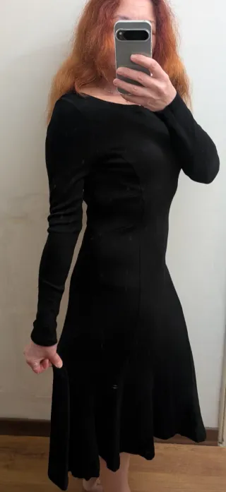 Vendo vestito nero a maniche lunghe con cerniera regolabile all'altezza del petto che permette così di regolare a proprio piacimento la scollatura del vestito. È molto comodo e morbido. Il prodotto è pari al nuovo in quanto è stato usato 1 volta. Marca Inside,taglia L. Per altre informazioni,contattami in privato