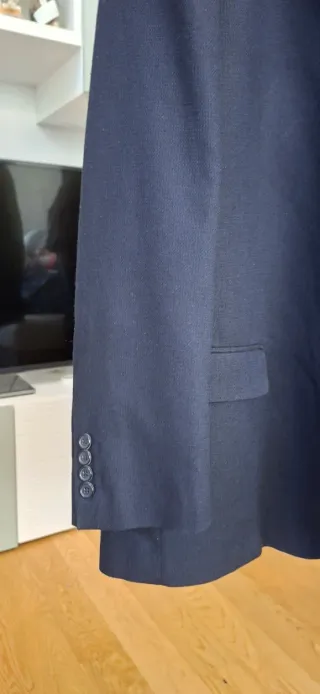 Elegante giacca da uomo. Giacca blu scura elegante uomo Misure spalle 51 cm ascelle 63 cm lunghezza 78 cm - Modello classico. - Chiusura a tre bottoni. - Due tasche frontali. - Fodera interna. - Polsini con bottoni.