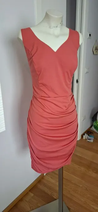 Abito elegante con un design raffinato. Abito elegante elasticizzato che esaltando la silouette Misure ascelle 48 cm lunghezza 100 cm - Scollo a V. - Dettagli drappeggiati sulla gonna. - Tessuto morbido e confortevole.