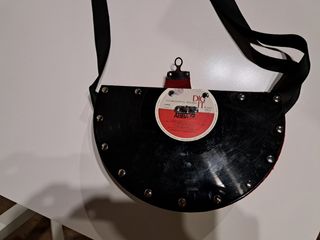 Borsetta pochette nera, un pezzo unico fatto a mano. - Realizzata con un disco in vinile. - Dettagli in metallo. - Tracolla regolabile.