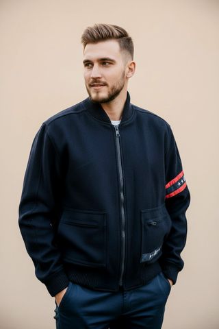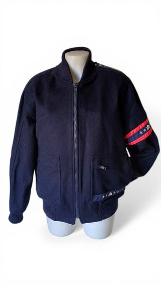 Iconico giubbotto bomber in lana cotta, un capo vintage degli anni '80. - Design stile bomber. - Dettagli a contrasto sulle maniche con stelle. - Tasche frontali applicate.