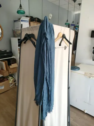 Sciarpa in cotone azzurro grigio di Conbipel. Il tessuto ha qualche pallino come mostrato in foto