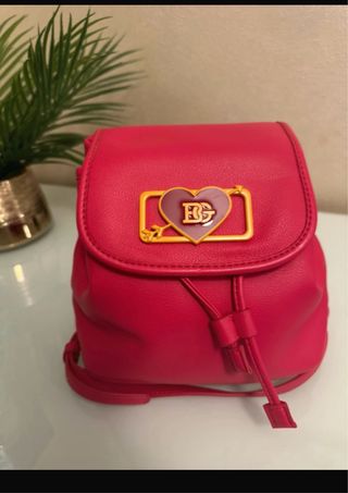 Zainetto Blugirl Blumarine con un delizioso dettaglio a forma di cuore dorato. - Materiale: similpelle. - Colore: fucsia. - Dettaglio: cuore dorato con logo. - Chiusura con coulisse.