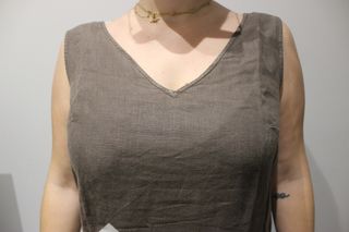 Vestito lungo dritto con scollo a V, con spacchi laterali. Colore cachi.(M24)