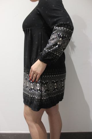 Vestito corto in flanella, con manica lunga, scollo rotondo, con disegno sulle maniche. M34