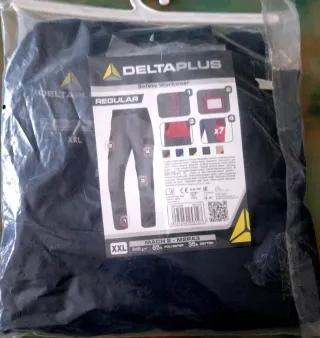 Vendo 2 pantaloni da lavoro Delta Plus, taglia XXL. Sono realizzati in tessuto resistente per garantire comfort e durata. - Materiale: 35% cotone. - Colore: nero e rosso. - Taglia: XXL / 48 / 58.