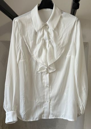 Elegante camicia da donna con dettagli sul collo Amaro Fashion, perfetta per ogni occasione. - Tessuto leggero e fluido. - Dettaglio con ruches sul davanti. - Maniche lunghe con polsini. - Chiusura con bottoni. Autentico Made in Brazil e in perfette condizioni. SPECIFICHE Taglia: M Larghezza (Spalle): 38cm Larghezza (Torace): 45cm Lunghezza: 63cm Maniche: 58cm Materiale: Poliestere