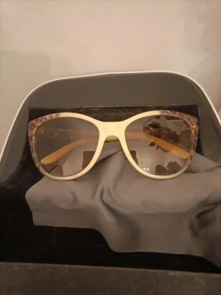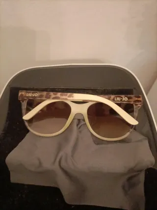 Occhiali da sole Liu Jo con montatura color beige e dettagli marrone. - Montatura in acetato. - Lenti con protezione UV. - Design cat-eye.