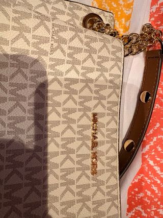 Piccola borsa con logo monogram. La tracolla è in catena dorata e pelle. - Logo Michael Kors dorato. - Dettagli in pelle marrone. - Tracolla a catena dorata.