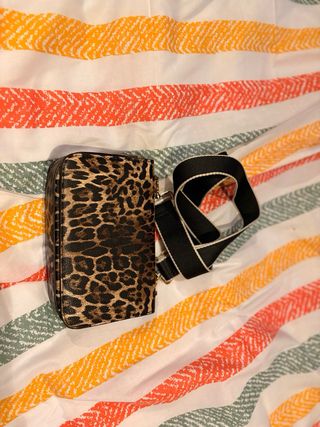 Elegante borsa con una vivace stampa leopardata. La tracolla nera con dettagli bianchi la rende versatile e alla moda. - Stampa leopardata - Tracolla nera con bordi bianchi - Logo sul davanti