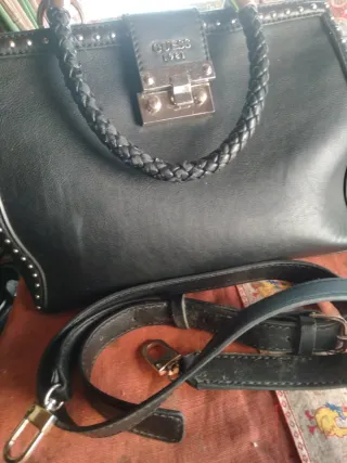 Borsetta Guess 1981 di colore nero, con dimensioni approssimative di 24x32x11 cm. - Manico intrecciato. - Dettagli con borchie. - Chiusura a scatto metallica. - Tracolla regolabile inclusa.
