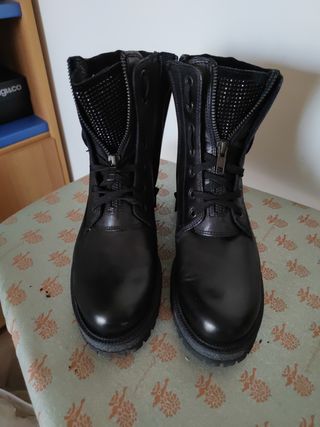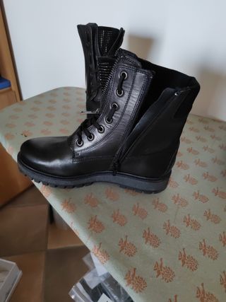 Scarponcini eleganti e resistenti, perfetti per completare il tuo look. - Tomaia in materiale scamosciato. - Allacciatura frontale con lacci. - Suola in gomma. Mai usati, nuovi.