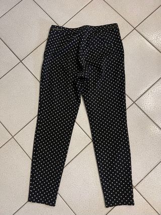 Bellissimo pantalone H&M fondo nero con fantasia bianca e grigia, tg 38 che corrisponde a 42, motivo di cernierine in vita, tasche laterali, taschino sul retro, nuovi mai indossati. Euro 10