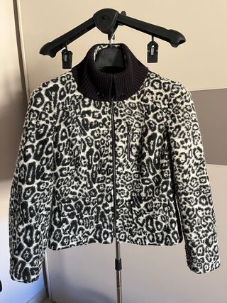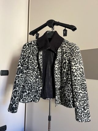 Giacca da donna animalier con fodera interna Betty Barclay Collection in ottime condizioni. Finto taschino con cerniera verticale lato cuore e due tasche frontali. Indossata pochissime volte. È una taglia 46, ma, secondo me, veste piccolo. Sarebbe meglio chiedere, se interessate, per prendere qualche misura in più.