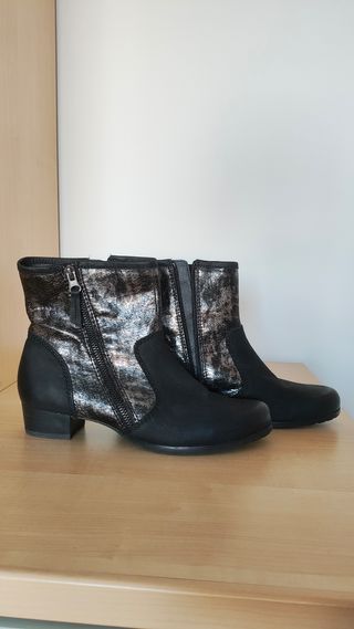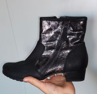 Stivaletti Caprice, perfetti per l'autunno e inverno. Sono in pelle nera e argento, con un comodo tacco basso. Ideali per un look elegante e casual. Usato poche volte. Taglia 6 Taglia 38 Pagate 70 euro in sconto. - Chiusura con zip laterale interna e esterna. - Tacco basso e comodo. - Pelle di ottima qualità.